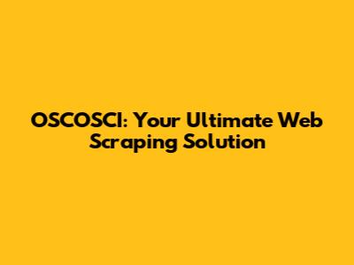 OSCOSCI: Your Ultimate Web Scraping Solution