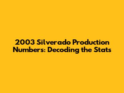 Hey truck enthusiasts! Ever wondered about the 2003 Silverado production numbers? Well, buckle up because we're about to dive deep into the fascinating world of Chevy Silverado production data from that year. Understanding these numbers can give you a better grasp of the truck's popularity, its availability, and even its potential value in the future. So, let's get started and unravel the mysteries behind the 2003 Silverado!