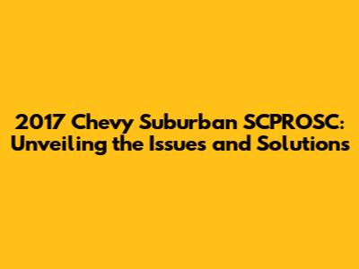 The 2017 Chevy Suburban SCPROSC is a powerful and spacious SUV. It offers a great driving experience. Being aware of the common problems, implementing these solutions, and following a good maintenance routine can help you keep your Suburban in top condition for years to come. If you're facing any of these issues, don't hesitate to seek professional help from a qualified mechanic. Early diagnosis and repair can prevent more significant problems and keep your Suburban performing at its best. Taking good care of your vehicle will help you avoid the issues and give you a great driving experience for years to come.