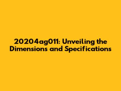 Detailed Breakdown of 20204ag011 Specifications