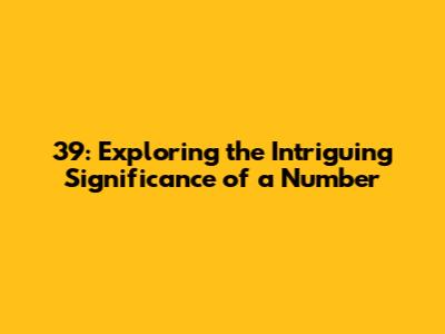 Unraveling the Mystery: What Makes 39 Special?