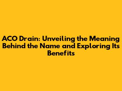 ACO Drain: More Than Just a Name
