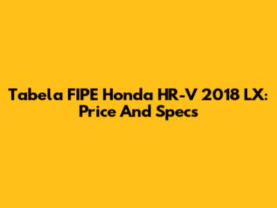 Tabela FIPE Honda HR-V 2018 LX: Price And Specs