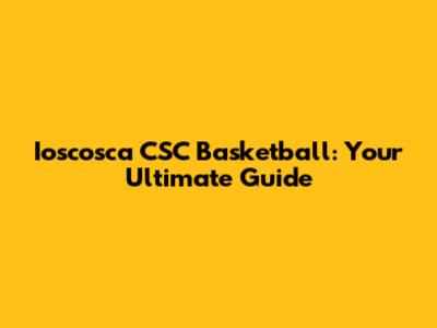 Ioscosca CSC Basketball: Your Ultimate Guide