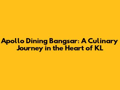 Unveiling Apollo Dining Bangsar: A Gastronomic Paradise
