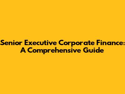 Senior Executive Corporate Finance: A Comprehensive Guide