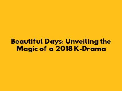 Hey guys! Let's dive into the world of K-dramas, specifically the 2018 drama "Beautiful Days"! If you're a K-drama newbie or a seasoned veteran, you know that each year brings a wave of incredible stories, and 2018 was no exception. So, let's unpack what made "Beautiful Days" a noteworthy addition to the K-drama landscape. We will explore the drama's key elements, from its storyline and characters to its overall impact and why it might still resonate with viewers today. This deep dive aims to give you a comprehensive understanding of what made this drama a memorable experience, so get ready to reminisce or maybe even discover a new favorite! We'll look at the plot's core, discuss the characters who brought it to life, and touch upon the behind-the-scenes magic that makes a K-drama so compelling. Whether you're here to refresh your memory or to get a feel for a drama you've never seen, let's explore why "Beautiful Days" continues to be a topic of discussion among drama lovers. Let's get started and unravel the charm and storytelling power of "Beautiful Days"!