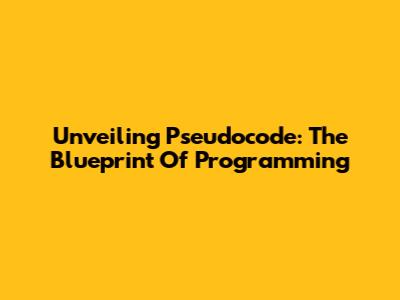 Unveiling Pseudocode: The Blueprint Of Programming