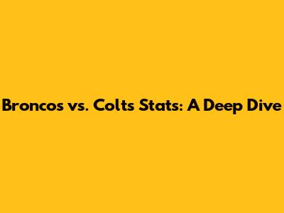 Alright guys, let's talk football! Today we're diving deep into the numbers, pitting the Denver Broncos against the Indianapolis Colts. When these two teams clash, it's not just about the score; it's about the story the stats tell. We're going to break down key performance indicators, historical matchups, and player statistics to give you a comprehensive look at what makes this rivalry tick. Whether you're a die-hard fan of either team or just a casual observer who loves a good statistical breakdown, stick around because we're about to get nerdy with some gridiron data. We'll explore everything from offensive efficiency and defensive prowess to special teams' impact and historical trends. So, grab your favorite snacks, settle in, and let's unravel the statistical tapestry of the Broncos and the Colts.