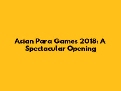 Asian Para Games 2018: A Spectacular Opening