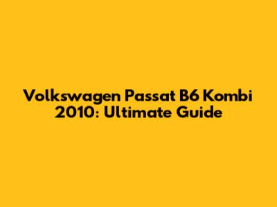 Volkswagen Passat B6 Kombi 2010: Ultimate Guide