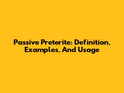 Passive Preterite: Definition, Examples, And Usage