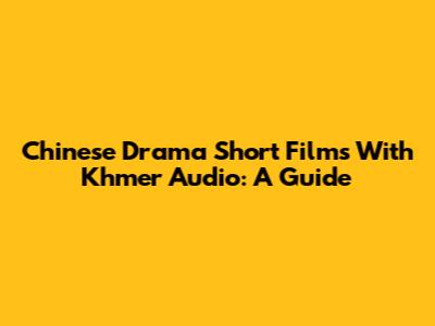 Chinese Drama Short Films With Khmer Audio: A Guide