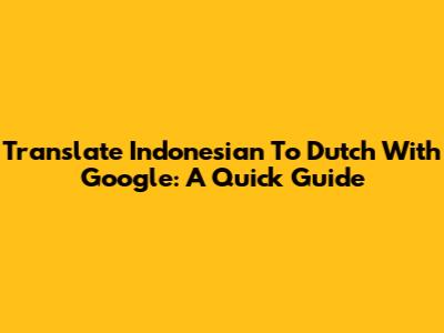 Translate Indonesian To Dutch With Google: A Quick Guide
