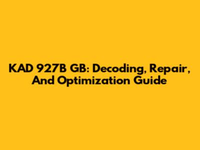 KAD 927B GB: Decoding, Repair, And Optimization Guide