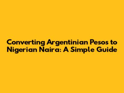 Converting Argentinian pesos to Nigerian naira involves understanding the basics, staying informed about the market, and choosing the right service. By following the tips and steps outlined in this guide, you can confidently convert your ARS to NGN and get the most out of your transaction. Remember to always compare rates, understand the fees, and stay up-to-date with market trends. Good luck, and happy converting!