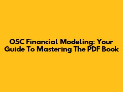 OSC Financial Modeling: Your Guide To Mastering The PDF Book