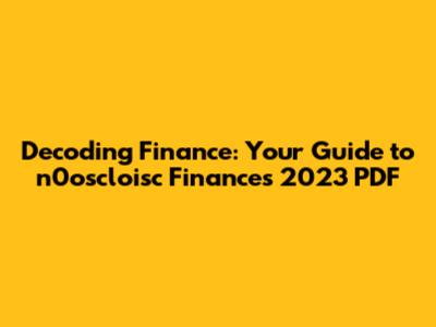 Hey everyone! Are you ready to dive into the world of finance? Specifically, we're going to break down the n0oscloisc de finances 2023 PDF. Now, I know what you might be thinking: "Finance? Sounds boring!" But trust me, understanding this stuff can be super empowering. Whether you're a seasoned investor, a small business owner, or just someone trying to make sense of their own money, this guide is for you. We'll explore what the n0oscloisc de finances 2023 PDF is all about, why it's important, and how you can use it to your advantage. No jargon, just clear explanations and practical insights. So, grab a cup of coffee (or your favorite beverage), and let's get started. This will also give you an overview to navigate your own finances in the modern world. Let's make finance a little less intimidating, shall we?