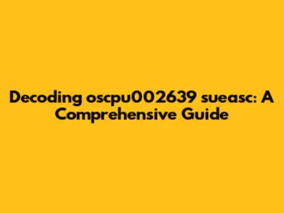Exploring the potential origins and interpretations of oscpu002639 sueasc requires us to consider various fields and systems where such a term might be used. Given its alphanumeric nature, it could be related to computing, engineering, or even organizational structures.