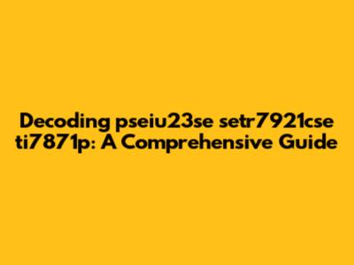 \nHey guys! Ever stumbled upon a random string of characters like pseiu23se setr7921cse ti7871p and wondered what in the world it could mean? Well, you're not alone! Decoding seemingly nonsensical strings can be a fun and intriguing process. While I can't definitively tell you exactly what this specific string represents without more context, I can walk you through the common methods and approaches used to decipher such codes. Let's dive in and explore the possibilities!