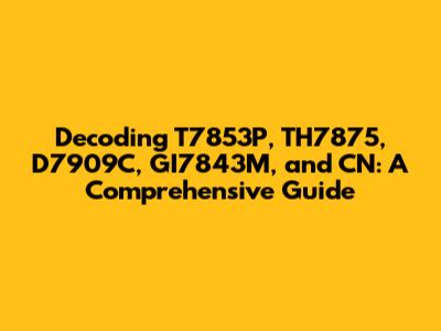In conclusion, while these codes – T7853P, TH7875, D7909C, GI7843M, and CN – might seem like random strings of characters, they each hold specific meanings within various contexts. Understanding these codes requires careful consideration of the industry, the product, and the surrounding information. By breaking down each code and exploring its potential applications, we can gain valuable insights into the complex systems and processes that drive modern industries. Ultimately, deciphering these codes is a matter of detective work, requiring a keen eye for detail and a willingness to explore different possibilities.
