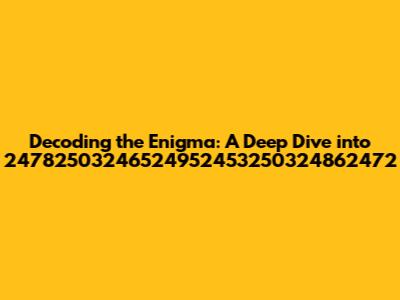 Hey guys, let's dive into something super intriguing! We're gonna break down the meaning behind the seemingly random sequence: 24782503246524952453250324862472. Yeah, I know, it looks like a bunch of numbers thrown together, but trust me, there's a story here. This isn't just a string of digits; it's a potential key to understanding... well, we don't know yet, but that's the fun part! The whole point of this exploration is to crack the code, to peel back the layers and see what lies beneath. So, buckle up, because we're about to go on a digital treasure hunt. Our goal? To turn this abstract sequence into something meaningful. The journey might involve some techy stuff, some detective work, and a whole lot of curiosity. Ready to embark on this adventure with me? Let's get started, shall we?