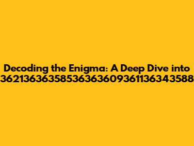 Hey guys, let's dive into the fascinating world of 36213636358536363609361136343588. This seemingly random string of numbers might seem like a digital puzzle, but trust me, understanding it can unlock some seriously cool insights. In this article, we're going to break down this code, exploring its potential meanings, applications, and the various contexts where it might pop up. We'll be looking at potential interpretations, from the technical to the more abstract, so buckle up, because this is going to be a fun ride! This journey will take us through different domains where such numerical sequences hold significance. We'll explore areas like data encoding, mathematical patterns, and even possible connections to specific systems or datasets. I aim to uncover the layers of meaning behind 36213636358536363609361136343588, providing a comprehensive understanding of its potential significance. We'll consider different perspectives, including technical analyses and more speculative interpretations. Our aim is not just to provide a single answer, but to consider a variety of angles, enriching our understanding of the subject.