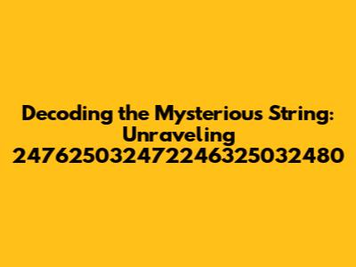 Hey guys! Ever stumble upon a string of numbers that just… sits there, taunting you with its inscrutability? Well, today, we're diving headfirst into one such enigma: 247625032472246325032480. Yeah, I know, it looks like something you'd use to reset a super-secret government mainframe, but trust me, we're going to break it down. We're going to explore what it might represent, the contexts where such strings pop up, and how we might even begin to decipher its secrets. Buckle up, because this is going to be a fun ride through the world of digital mysteries!