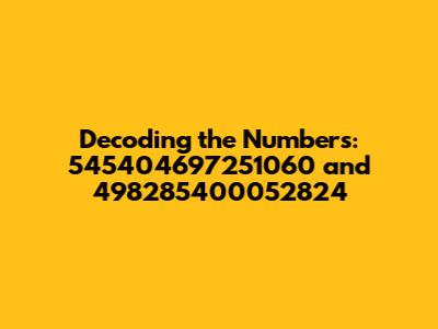Hey guys! Ever stumble upon a string of numbers that just seems to hang in the air, begging for an explanation? That's what we're diving into today with the fascinating sequences: 545404697251060 and 498285400052824. These aren't your everyday numbers; they're like secret codes waiting to be cracked. In this article, we'll explore what these numbers might represent, their potential origins, and what insights they could unlock. So, buckle up; we're about to embark on a numerical adventure!