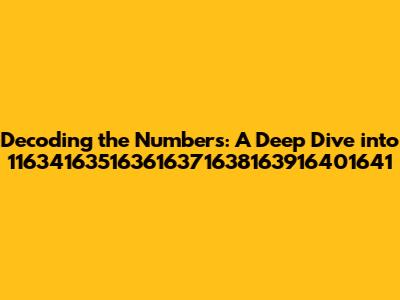 Hey everyone, let's dive into something a bit… unique. We're talking about the number 116341635163616371638163916401641. Yeah, that's a mouthful, right? But trust me, there's a fascinating story behind even the most intimidating numbers. This isn't just a random string of digits; it could be anything from a massive prime number to a complex code. The goal here is to break it down, understand what it might represent, and, most importantly, have some fun along the way. We're going to explore all sorts of possibilities – mathematical properties, potential patterns, and maybe even some real-world connections. So, buckle up, because we're about to embark on a numerical adventure!