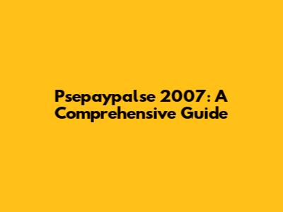 Psepaypalse 2007: A Comprehensive Guide