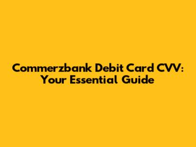 Commerzbank Debit Card CVV: Your Essential Guide