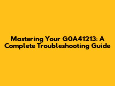 Mastering Your G0A41213: A Complete Troubleshooting Guide