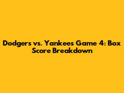 Alright, baseball fanatics, let's dive deep into the Dodgers vs. Yankees Game 4 box score. We're talking about a matchup that always gets the blood pumping – two legendary teams battling it out on the diamond. This breakdown isn't just about numbers; it's about the stories they tell, the pivotal moments, and the strategies that shaped the game. So, grab your peanuts and cracker jacks (or whatever your game day snack of choice is), and let's get into it! We'll dissect the key stats, highlight the heroes and, maybe, shed a tear or two over the missed opportunities. After all, isn't that what makes baseball so darn compelling?