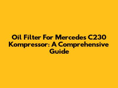 Oil Filter For Mercedes C230 Kompressor: A Comprehensive Guide