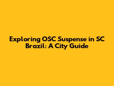 Hey guys! Ever heard of OSC Suspense in SC Brazil? Well, buckle up, because we're diving deep into what makes this city tick. This guide is your ultimate companion to understanding everything OSC Suspense and uncovering the hidden gems of this Brazilian city. We're going to explore what makes OSC Suspense so intriguing, how it plays a role in the city's vibe, and why you should consider adding SC Brazil to your travel bucket list. Get ready to uncover the heart of this city, understand its unique charm, and learn why OSC Suspense is more than just a phrase; it's a way of life.