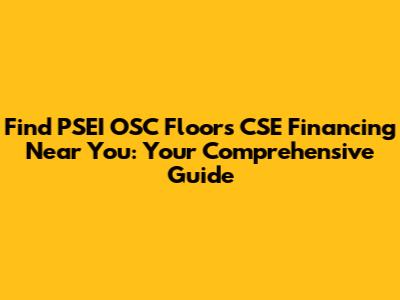 Hey there, finance folks and real estate enthusiasts! Are you looking for pseioscfloorscse financing near me? Well, you've landed in the right place! Finding the right financing for your PSEI OSC Floors CSE project can be a bit like navigating a maze, but don't worry, we're here to be your friendly guides. In this article, we'll break down everything you need to know about securing financing for your PSEI OSC Floors CSE venture, from understanding what it is, exploring the financing options available, and discovering how to find the best deals in your area. Let's get started, shall we?