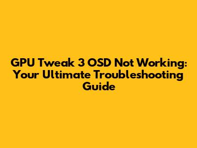 Step-by-Step Troubleshooting for GPU Tweak 3 OSD