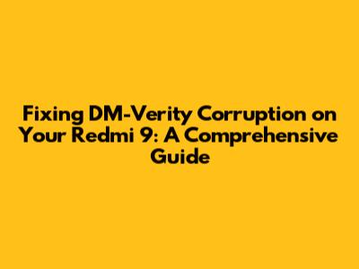 Hey guys! Ever stumbled upon the dreaded "dm-verity corruption" error on your Redmi 9? It's a real headache, I know. But don't sweat it! This article is your go-to guide for understanding and, more importantly, fixing this issue. We'll break down what dm-verity is, why it's causing trouble, and walk you through the steps to get your phone back up and running smoothly. So, let's dive in and get your Redmi 9 back to its best!
