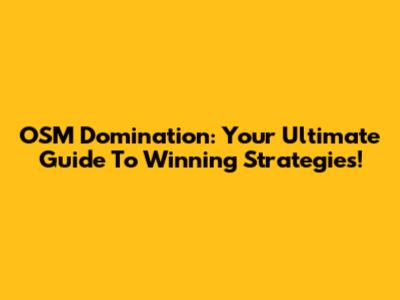 OSM Domination: Your Ultimate Guide To Winning Strategies!