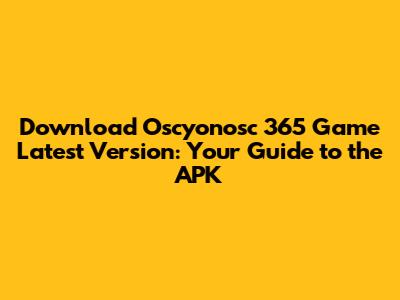 Hey guys! Are you ready to dive into the world of Oscyonosc 365? It's the talk of the town, and if you're here, you're probably looking to download the game. Well, you've come to the right place! We're going to break down everything you need to know about getting the latest version of the Oscyonosc 365 APK, making sure you can jump right in and start playing. This guide is designed to be super easy to follow, even if you're not a tech whiz. So, let's get started and make sure you're all set to enjoy this awesome game!