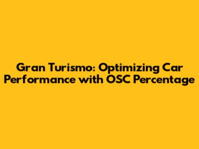 How to Adjust OSC Percentage in Gran Turismo