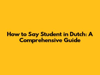 Understanding the Basics: "Student" in Dutch