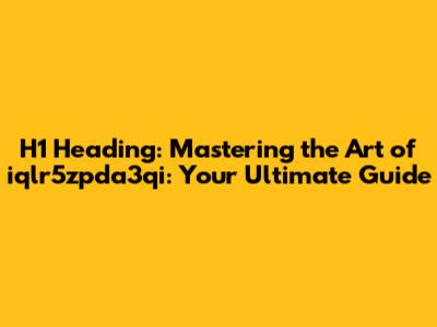 H1 Heading: Mastering the Art of iqlr5zpda3qi: Your Ultimate Guide