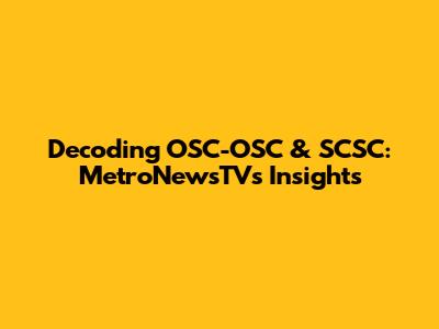 Decoding OSC-OSC & SCSC: MetroNewsTV's Insights