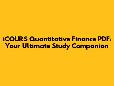 Why the iCOURS Quantitative Finance PDF is a Game-Changer