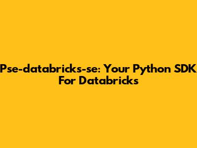 Pse-databricks-se: Your Python SDK For Databricks
