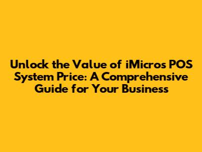 Unlock the Value of iMicros POS System Price: A Comprehensive Guide for Your Business