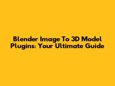 Blender Image To 3D Model Plugins: Your Ultimate Guide