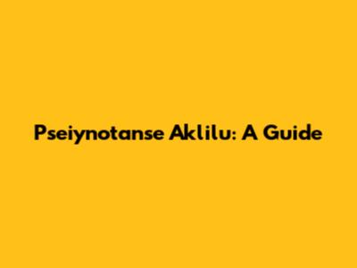 Pseiynotanse Aklilu: A Guide